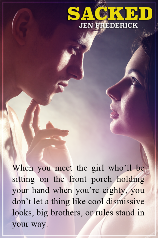 When Ellie meets Knox, she knows she’s in trouble. He’s pursuing her with the same intensity that he applies to his football career. Her heart has been Sacked. She should not give in to her desires because she has secrets that could not only ruin her but ruin Knox’s future career. Her secrets could ruin the teams chance at a national championship.