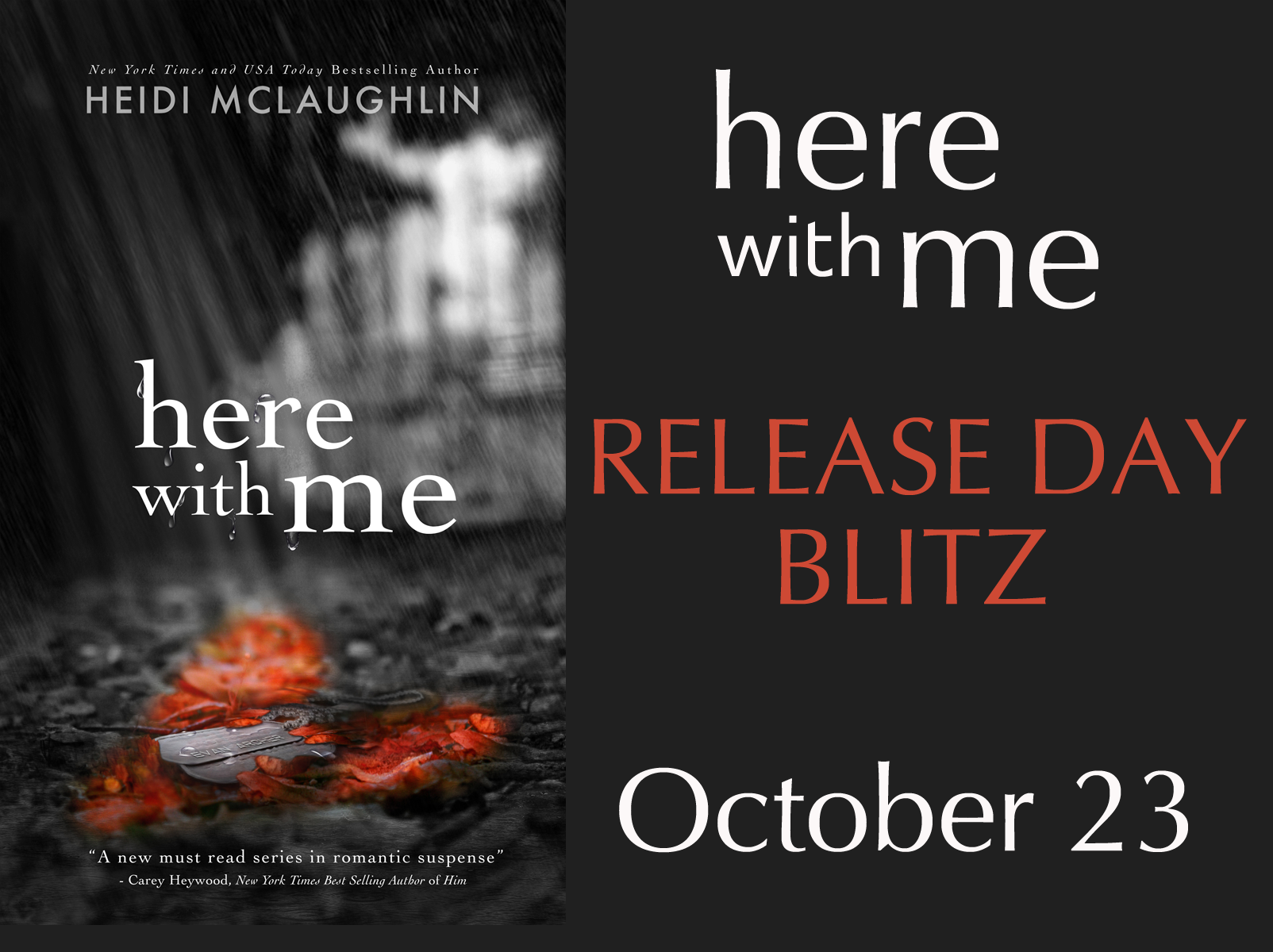 Today we are revealing the cover of the novel HERE WITH ME by New York Times Bestselling author Heidi McLaughlin. The book will be released on Thursday, October 23rd.
