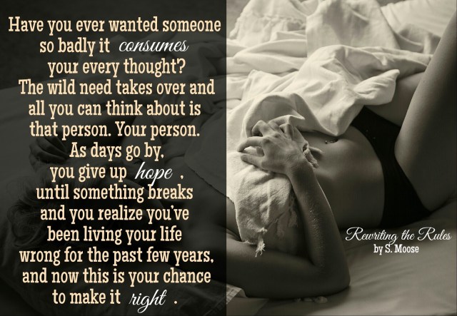 A 2011 St. John Fisher graduate, S.Moose loves to read and write. She enjoys getting lost in the fictional world and creating a place where readers can fall in love and swoon over the cute boys she brings to life. When she isn’t in her room in front of her computer or a book, she is with her family and friends being silly and enjoying life. She’s romantic at heart and loves anything with a happily ever after.